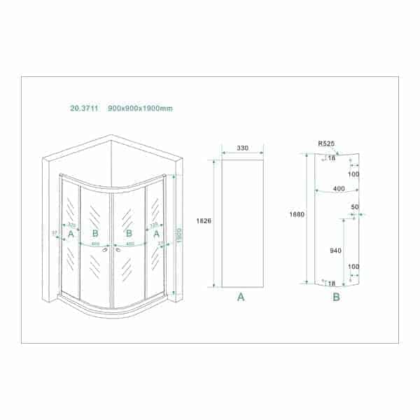 Maatvoering van deze douchecabine
