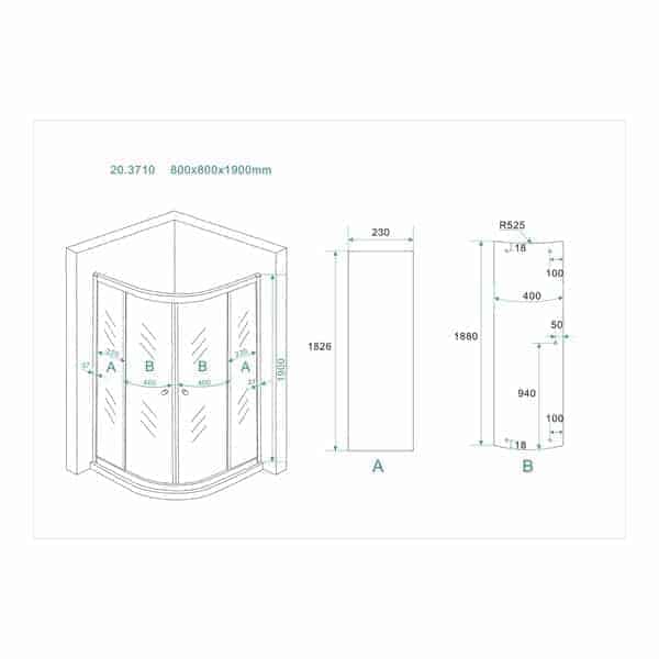 Maatvoering van deze douchecabine