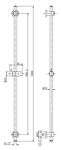 Deze glijstang is te combineren met alle opbouw- en inbouwkranen van Wiesbaden Sanitair.