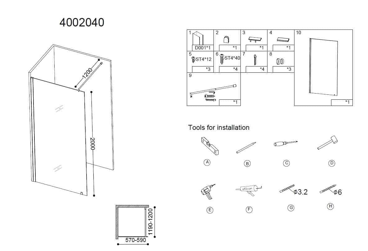 Maatvoering van de douchewand