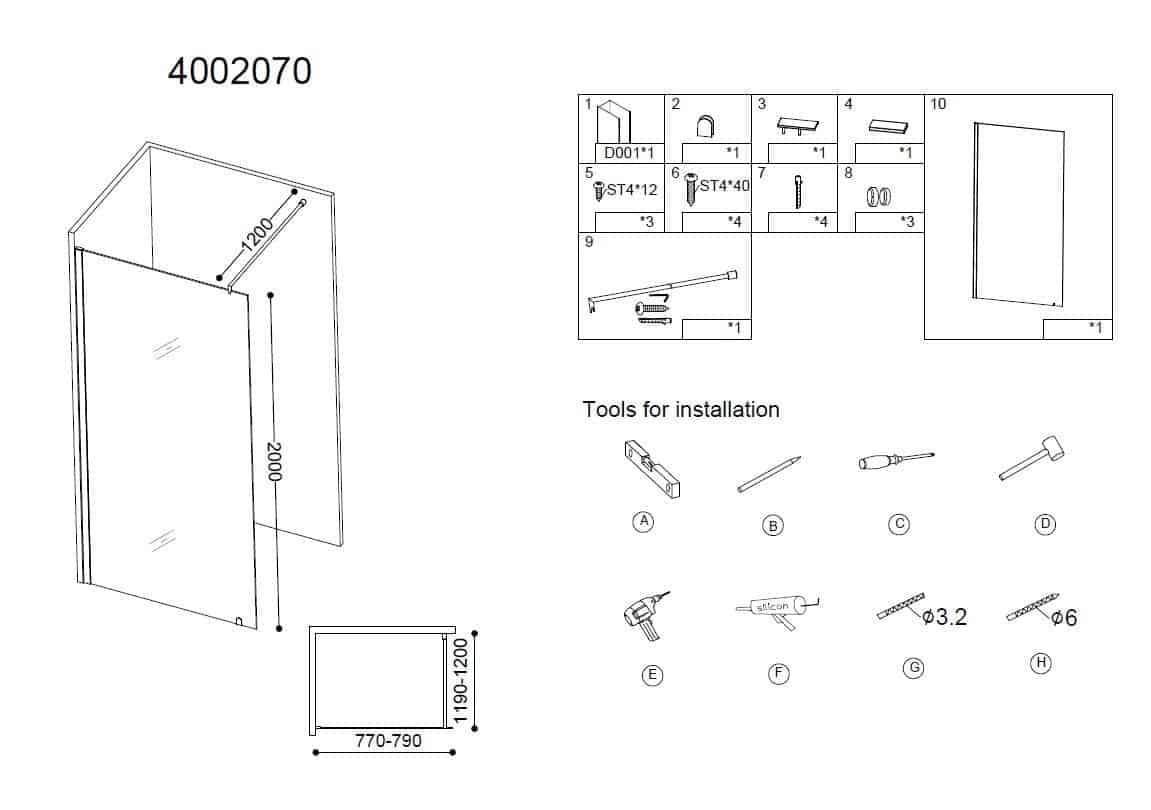 Inloopdouche, douchewand, douchewand met muurprofiel