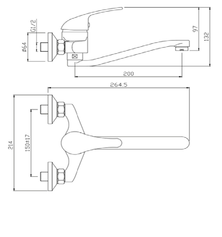 kenmerk: wandmengkraan met onderuitloop