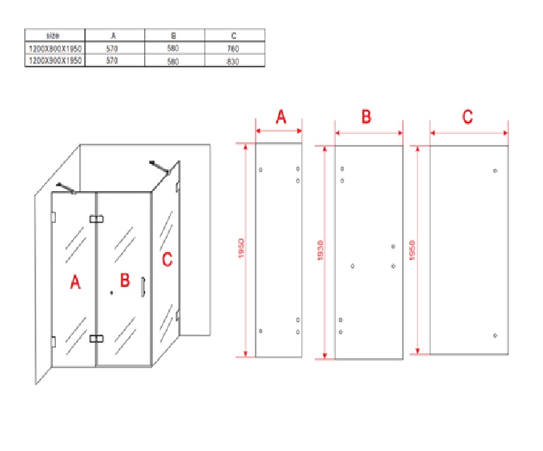 - 80 x 120 x 195 en 90 x 120 x 195 cm