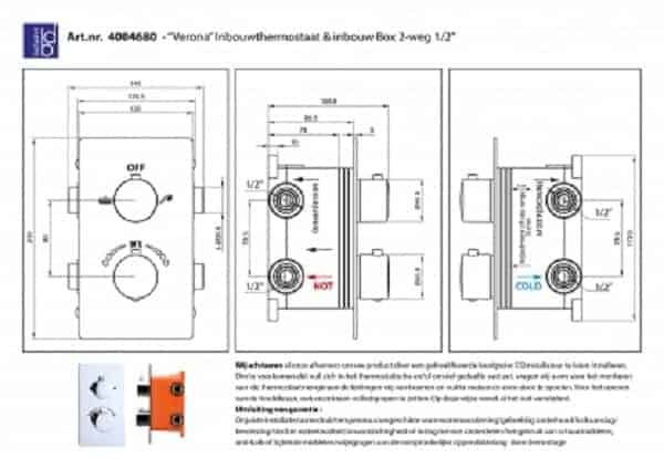 - Geleverd wordt: de complete kraan: opbouwdeel douchekraan Nancy + inbouwbox