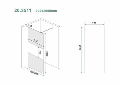 - een wand met een zgn. schaamrand in het glas, d.w.z. dat 1/3 deel van het glas mat is, waardoor u “vrij” achter de wand kunt staan?